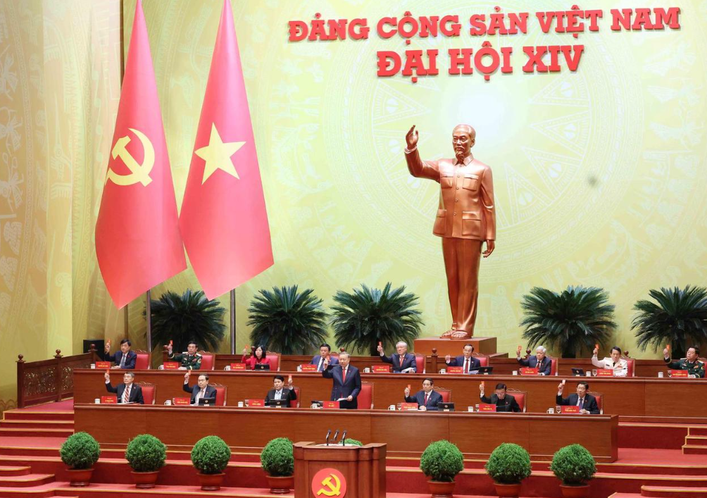 Đại biểu dự Đại hội lần thứ XIV của Đảng thông qua danh sách 200 Ủy viên Ban chấp hành Trung ương Đảng. Ảnh: TTXVN