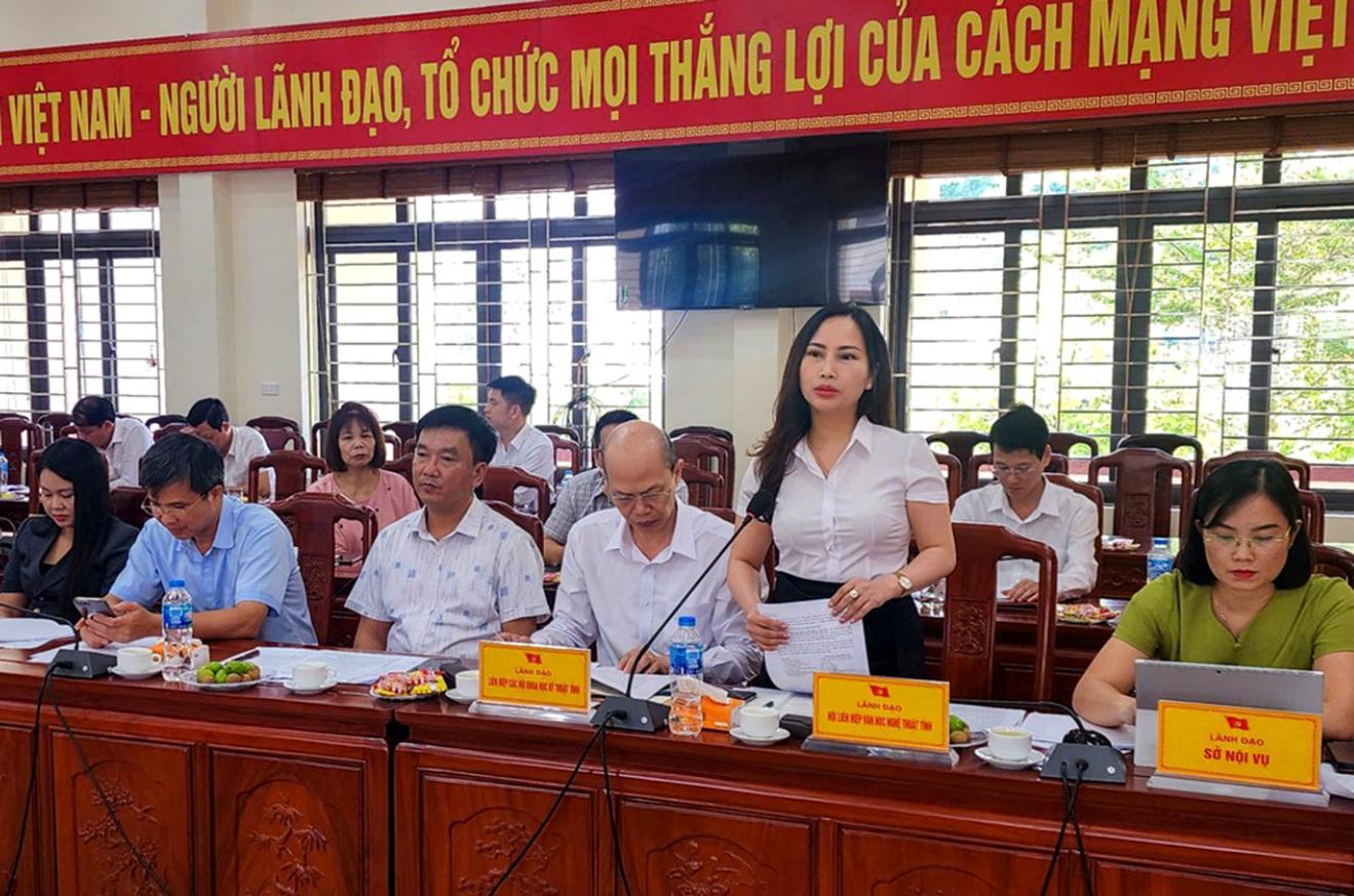 Đại biểu thảo luận tại Hội nghị lấy ý kiến của đội ngũ văn nghệ sĩ, trí thức, nhà khoa học trên địa bàn tỉnh vào Dự thảo Báo cáo Chính trị trình Đại hội Đảng bộ tỉnh Lào Cai lần thứ I, nhiệm kỳ 2025 – 2030. Ảnh: Nguyễn Tâm