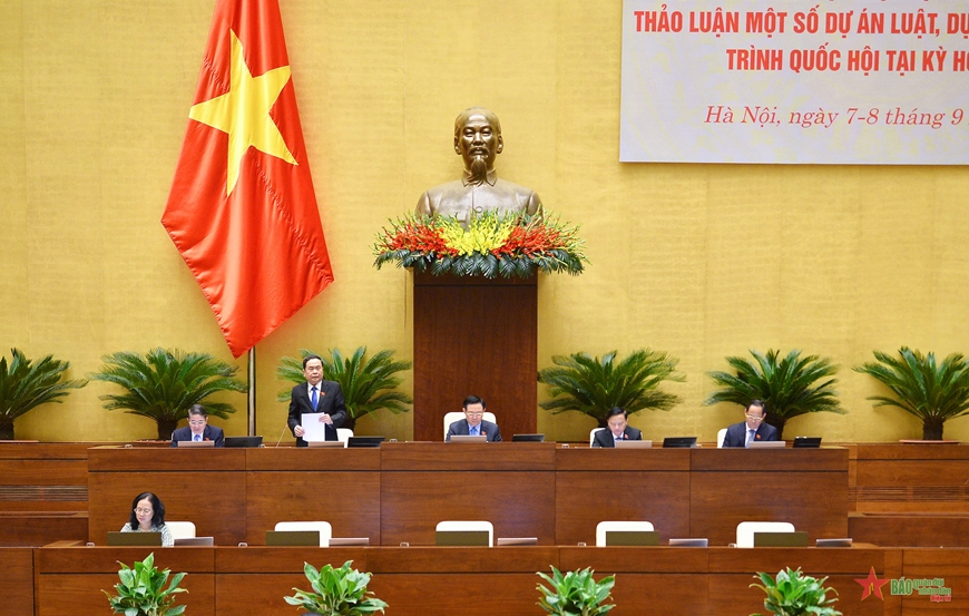 Sáng 8-9, tại Nhà Quốc hội, Hội nghị Đại biểu Quốc hội hoạt động chuyên trách cho ý kiến vào dự thảo Nghị quyết Ban hành Nội quy kỳ họp Quốc hội (sửa đổi). Chủ tịch Quốc hội Vương Đình Huệ chủ trì, Phó chủ tịch Thường trực Quốc hội Trần Thanh Mẫn điều hành thảo luận.