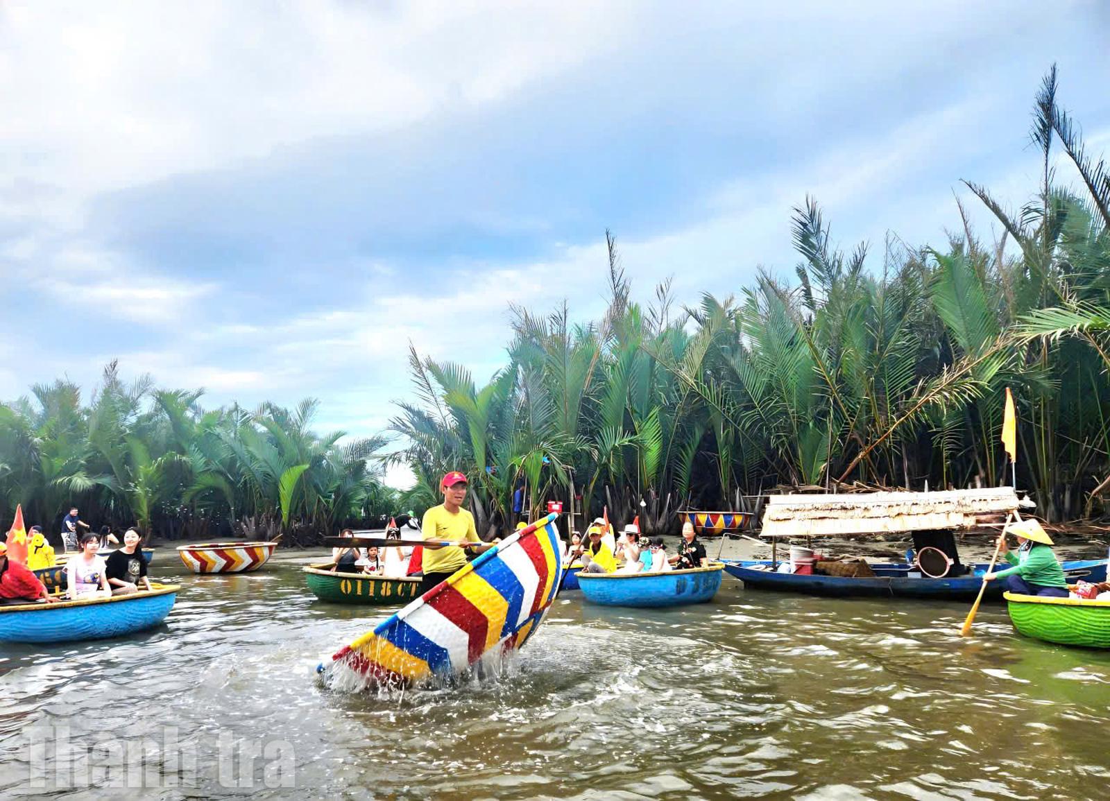 Múa thuyền thúng tại rừng dừa Bảy Mẫu (Hội An), hoạt động trải nghiệm đặc sắc được du khách ưa chuộng khi đến TP Đà Nẵng. Ảnh: HH
