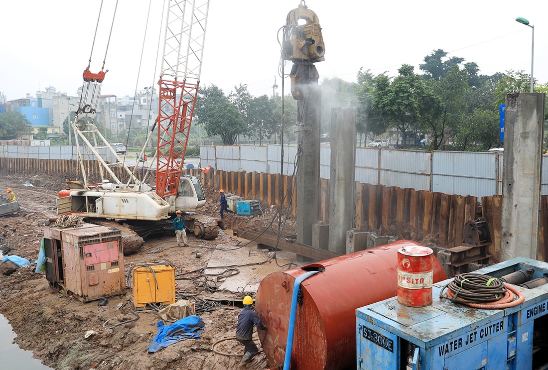 Những ngày này, trên công trường thi công các dự án phòng, chống ngập úng khẩn cấp của thành phố Hà Nội, hàng trăm công nhân cùng máy móc đang tích cực làm việc để kịp hoàn thành trước mùa mưa năm nay.