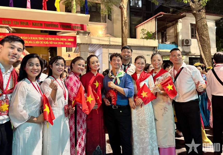 NSND Xuân Bắc cùng các nghệ sĩ, diễn viên thuộc khối văn hóa nghệ thuật tại Lễ kỷ niệm, diễu binh, diễu hành Cách mạng Tháng Tám, Quốc khánh 2-9. |
