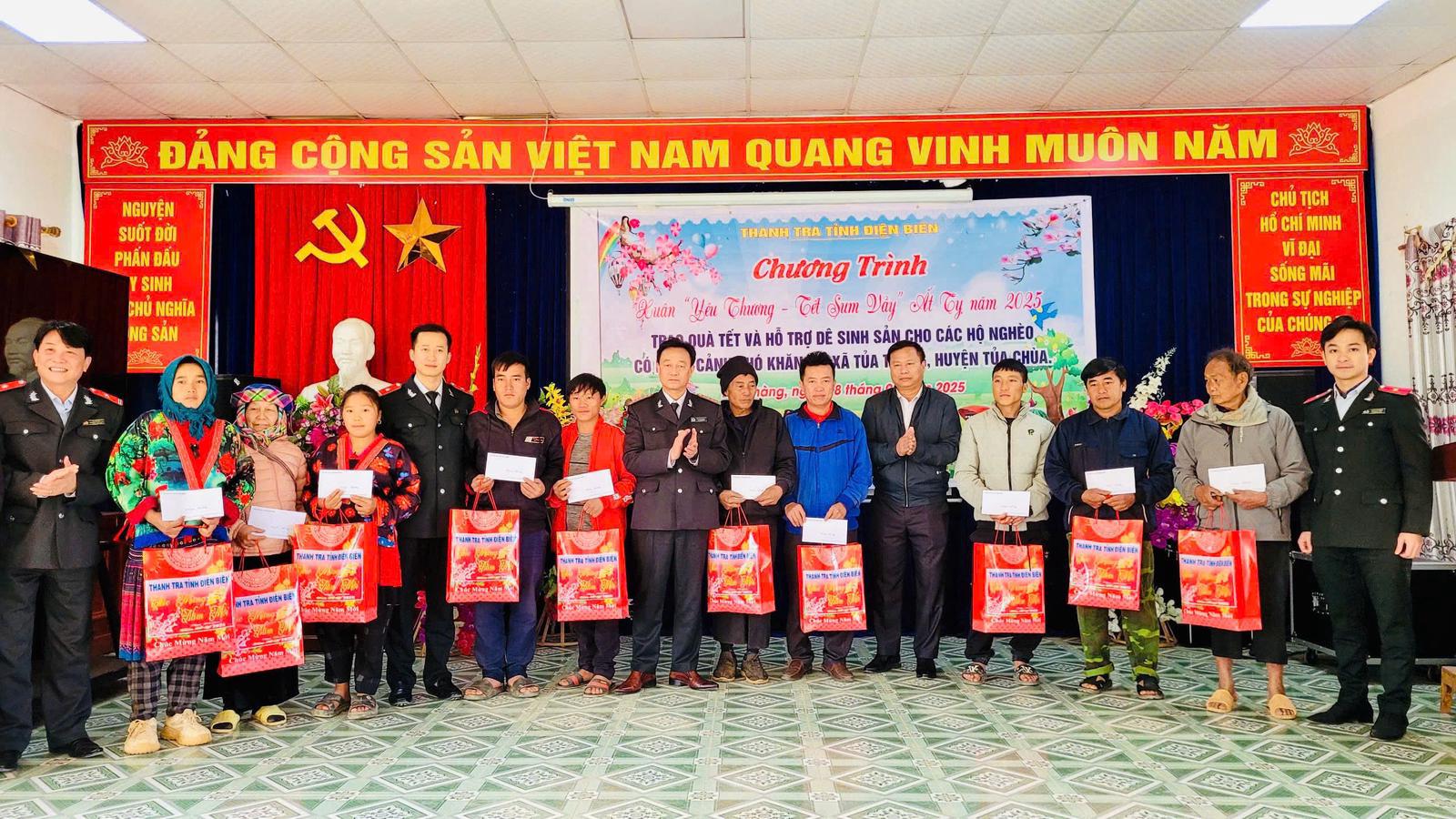 Tặng quà Nhân dân có hoàn cảnh khó khăn tại xã Tủa Thàng (huyện Tủa Chùa cũ) nhân dịp Tết nguyên đán Ất Tỵ 2025. Ảnh: ĐB