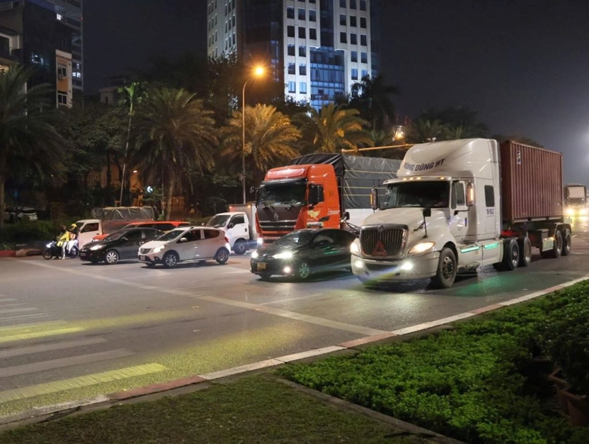 Thiếu tá Ngô Văn Tâm, cán bộ Đội Cảnh sát giao thông đường bộ số 6 cho biết, để bảo đảm an toàn giao thông, đơn vị đã tăng cường lực lượng tuần tra, kiểm soát, hướng dẫn và nhắc nhở các phương tiện không dừng, đỗ trên các tuyến đường dẫn vào vành đai 3. Đồng thời, tại các nút giao trọng điểm đều bố trí cán bộ trực tiếp phân luồng, hướng dẫn xe tải trọng lớn di chuyển, qua đó hạn chế nguy cơ xung đột giao thông. Bên cạnh lực lượng trực tiếp làm nhiệm vụ tại hiện trường, Phòng Cảnh sát giao thông (Công an TP Hà Nội) còn bố trí cán bộ theo dõi, giám sát tình hình giao thông tổng thể thông qua hệ thống camera AI, kịp thời phát hiện và phối hợp xử lý các tình huống phát sinh trên các tuyến đường.
