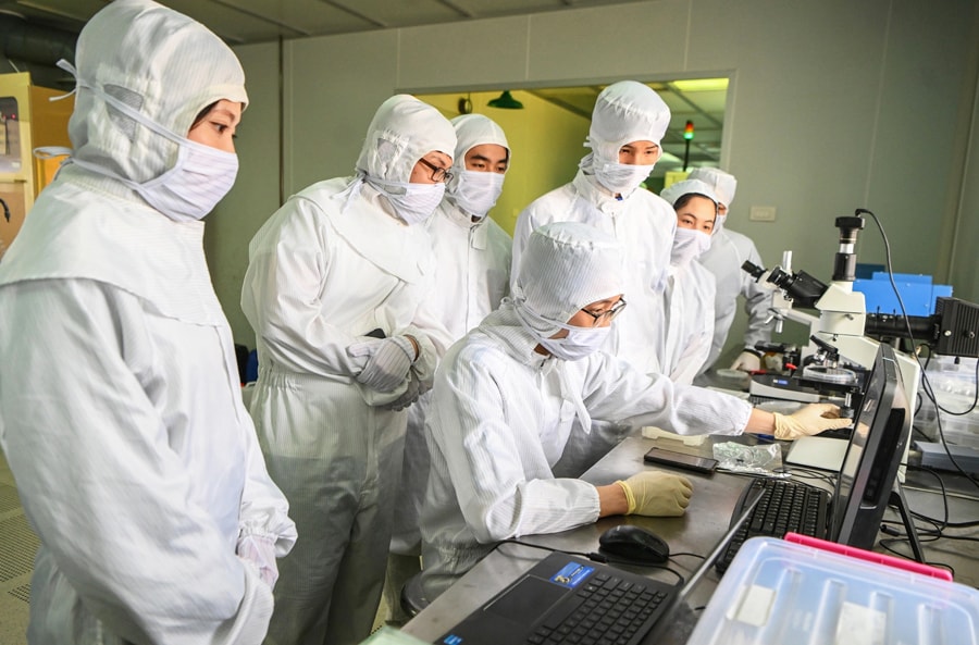 Nghiên cứu khoa học tại phòng thí nghiệm của Trung tâm Nano và năng lượng, Trường Đại học Khoa học tự nhiên (Đại học Quốc gia Hà Nội). Ảnh: Giang Huy