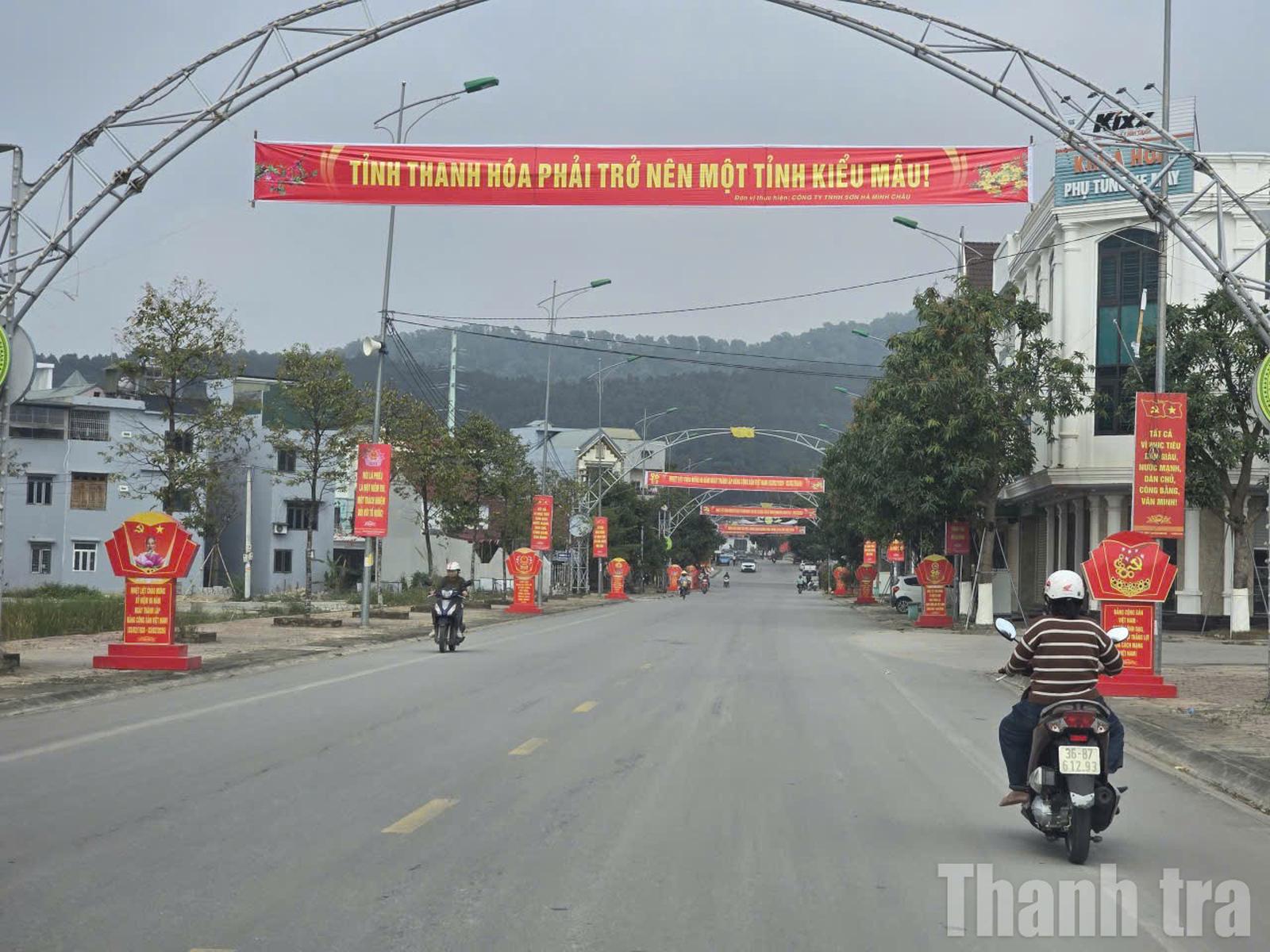 Các phố phường ở Thanh Hóa cờ hoa rực rỡ chuẩn bị cho ngày hội lớn. Ảnh: Văn Thanh