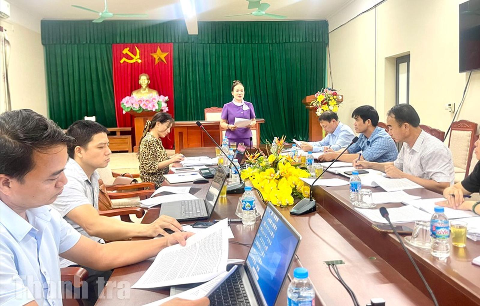 Phó Chánh Thanh tra tỉnh Bắc Ninh Nguyễn Thị Hường (đứng giữa) trao đổi với địa phương. Ảnh: Hằng Nga