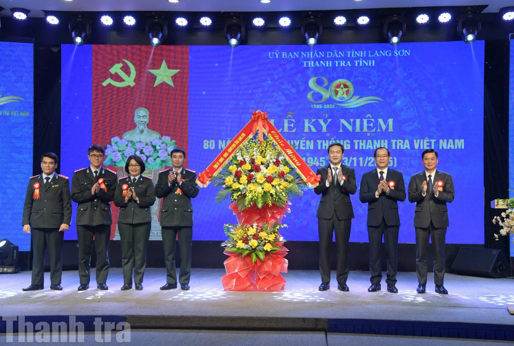 Lãnh đạo HĐND tỉnh, UBND tỉnh tặng hoa chúc mừng tập thể Thanh tra tỉnh Lạng Sơn nhân ngày 23/11. Ảnh: PV