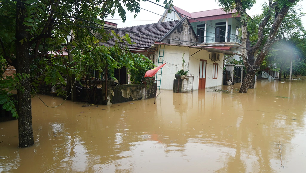 Nhà dân ở xã Vĩnh Yên (Thanh Hóa) bị ngập sâu từ 1 đến 2m sau bão số 10. Ảnh: thanhnien.vn |