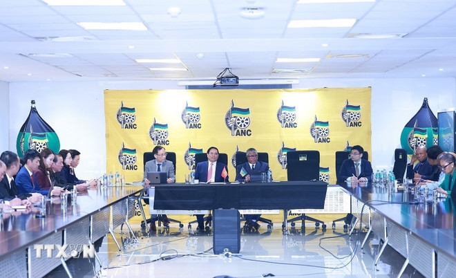 Trên tinh thần đó, Thủ tướng Chính phủ đề nghị hai Đảng tiếp tục củng cố tin cậy chính trị, tập trung triển khai hiệu quả Bản ghi nhớ về hợp tác giữa Đảng Cộng sản Việt Nam và Đảng ANC ký tháng 5-2025 vừa qua, tăng cường tiếp xúc, trao đổi đoàn các kênh, các cấp, nhất là cấp cao, đẩy mạnh trao đổi kinh nghiệm lãnh đạo, xây dựng đảng, giải quyết các vấn đề kinh tế, xã hội của đất nước, tăng cường hợp tác kinh tế, thương mại và đầu tư theo hướng thực chất, hiệu quả, phát huy nguồn lực, thế mạnh, bổ sung cho nhau để phát triển. Thông tin về chiến lược phát triển đất nước, Thủ tướng Chính phủ đề nghị Đảng ANC và Nam Phi nói chung hợp tác, ủng hộ Việt Nam đạt các mục tiêu 100 năm.
