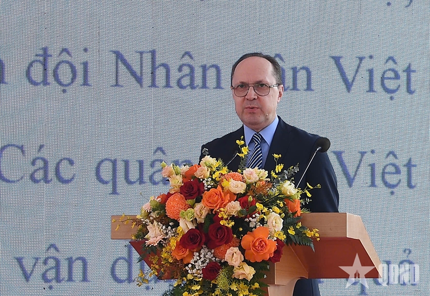 | Đại sứ Liên bang Nga tại Việt Nam Gennady Stepanovich Bezdetko phát biểu tại buổi lễ. Ảnh: PHÚ SƠN |