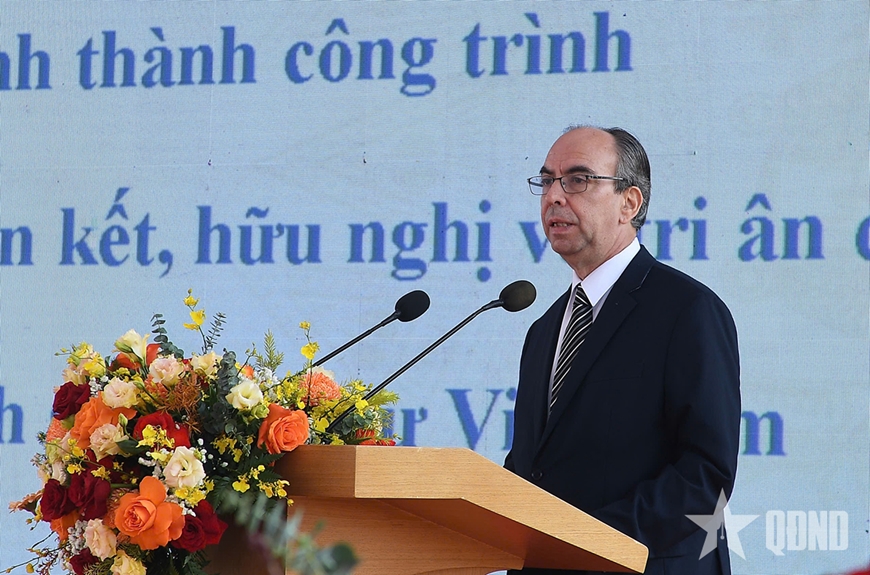 Xúc động tham dự buổi lễ, Đại sứ Cuba tại Việt Nam Rogelio Polanco Fuentes chia sẻ, mối quan hệ hữu nghị truyền thống Việt Nam - Cuba được hun đúc từ trong lửa đạn chiến tranh. Trên con đường cách mạng gian khổ, nhân dân hai nước luôn sát cánh bên nhau, cùng chia sẻ gian nan thử thách.