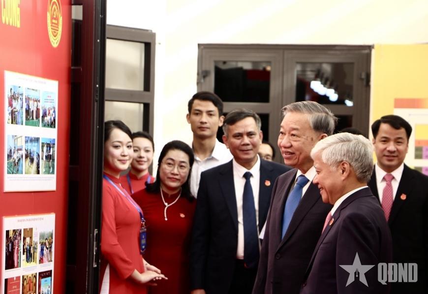 Tổng Bí thư Tô Lâm và các đại biểu tham quan Triển lãm ảnh "Khơi nguồn sức mạnh đại đoàn kết - xây dựng đất nước hùng cường". |