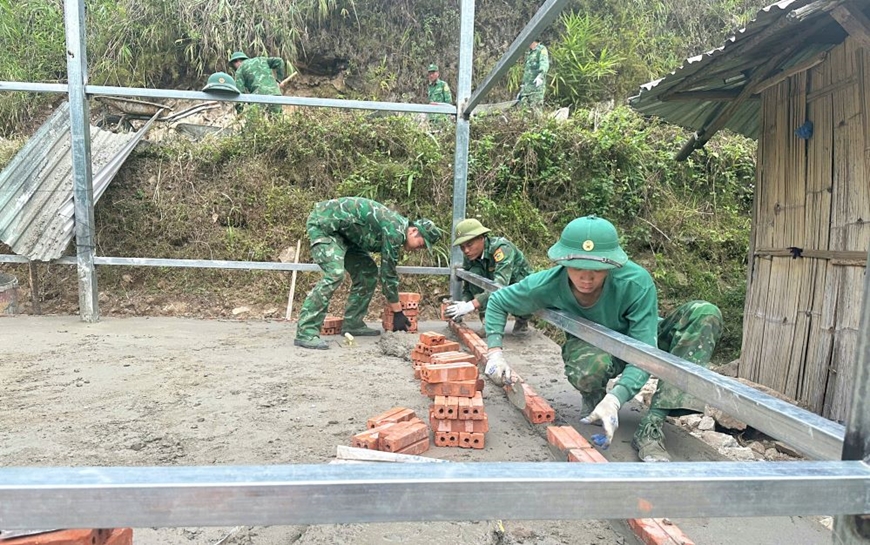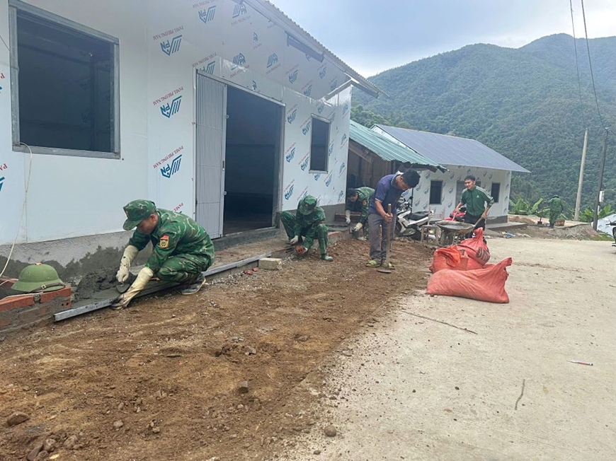 Bám sát các mục tiêu, chỉ tiêu nghị quyết, cả trong giai đoạn 1 và giai đoạn 2, Đồn Biên phòng Pa Vệ Sử đã thành lập các tổ công tác, mỗi tổ 10 cán bộ, chiến sĩ xuống từng hộ gia đình giúp dân xây nhà. Từ việc dỡ nhà cũ, san nền, bao móng, dựng khung nhà mới đến trộn vữa, đổ bê tông, xây tường, hàn sắt, bắn tôn lợp nhà... đều do anh em trong Đồn trực tiếp làm. Có tổ công tác ở lại bản suốt cả tháng trời, cùng ăn, cùng ở, cùng làm với đồng bào từ sáng sớm đến tối mịt... Không chỉ trực tiếp giúp đồng bào xây dựng nhà mới, anh em còn tranh thủ tuyên truyền chính sách, phổ biến pháp luật, vận động bà con xóa bỏ hủ tục... để mỗi căn nhà mới không chỉ là nơi ở, mà là điểm khởi đầu của nếp sống mới, văn minh hơn, ổn định hơn.