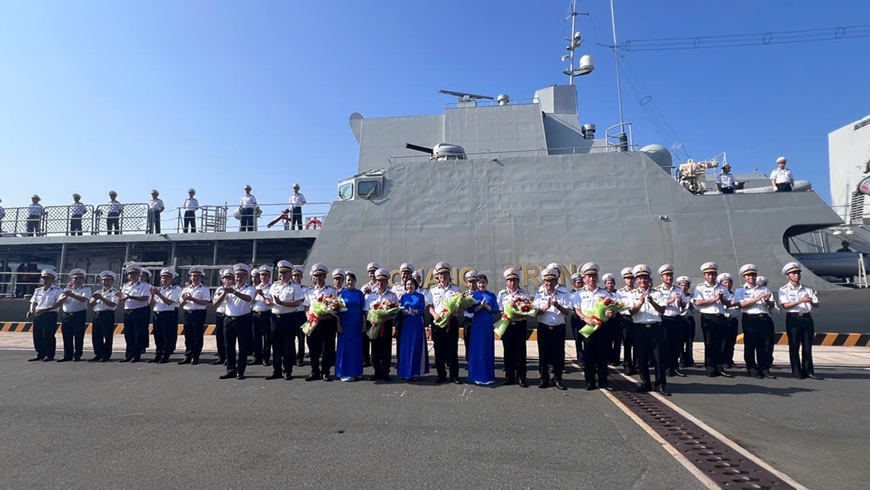 Lễ đón Tàu 016 - Quang Trung và đoàn công tác tại Quân cảng Cam Ranh sáng 22-4.