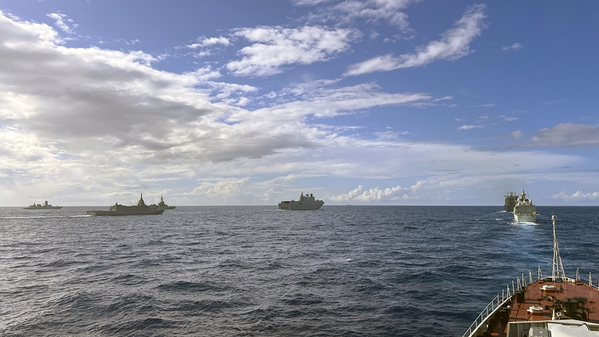 Tàu của các nước tham gia vận động đội hình chụp ảnh trên không từ vịnh Jervis đến vịnh Sydney nhìn từ Tàu 016 - Quang Trung, ngày 20-3.