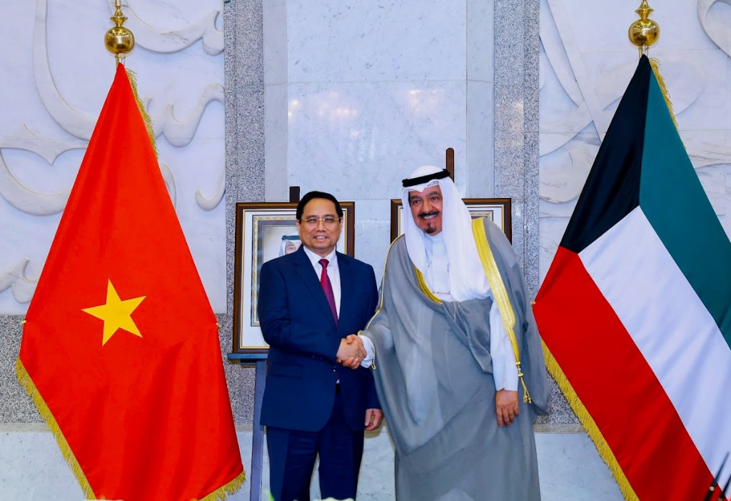 Thủ tướng Chính phủ Phạm Minh Chính và Thủ tướng Nhà nước Kuwait Sheikh Ahmad Al-Abdullah Al-Sabah nhất trí nâng cấp quan hệ hai nước lên Đối tác Chiến lược.