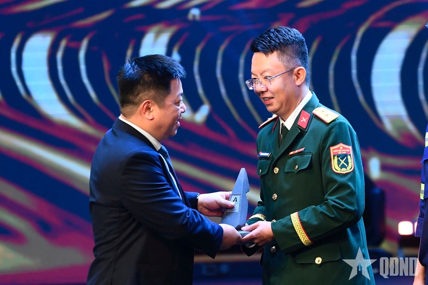 | Trung tá, nhà báo Hoàng Trường Giang (Báo Quân đội nhân dân) nhận giải thưởng hạng mục Dự án truyền cảm hứng. |