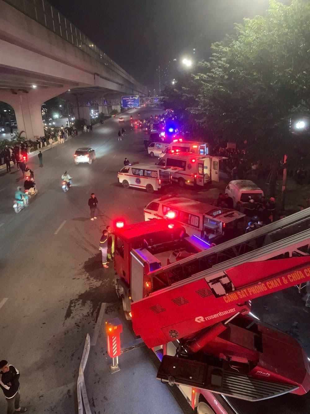 Lập tức, CATP đã điều động lực lượng Cảnh sát PCCC&CNCH CATP và Công an các quận Bắc Từ Liêm, Nam Từ Liêm, Cầu Giấy, Thanh Xuân, Tây Hồ đến hiện trường phối hợp chính quyền, người dân địa phương tổ chức chữa cháy, cứu nạn, cứu hộ.