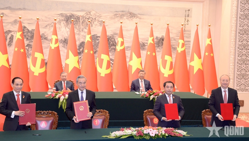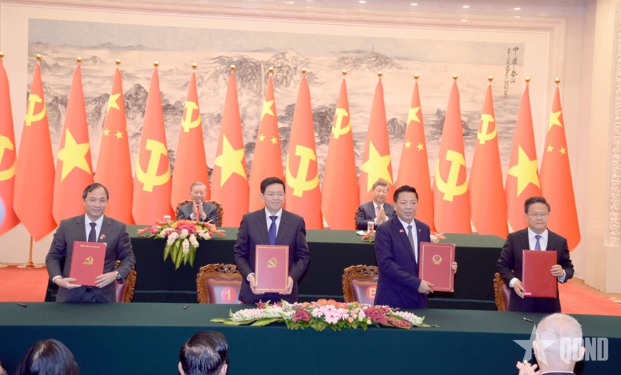 Tổng Bí thư, Chủ tịch nước Tô Lâm và Tổng Bí thư, Chủ tịch Trung Quốc Tập Cận Bình chứng kiến ký kết các văn kiện hợp tác giữa hai nước.