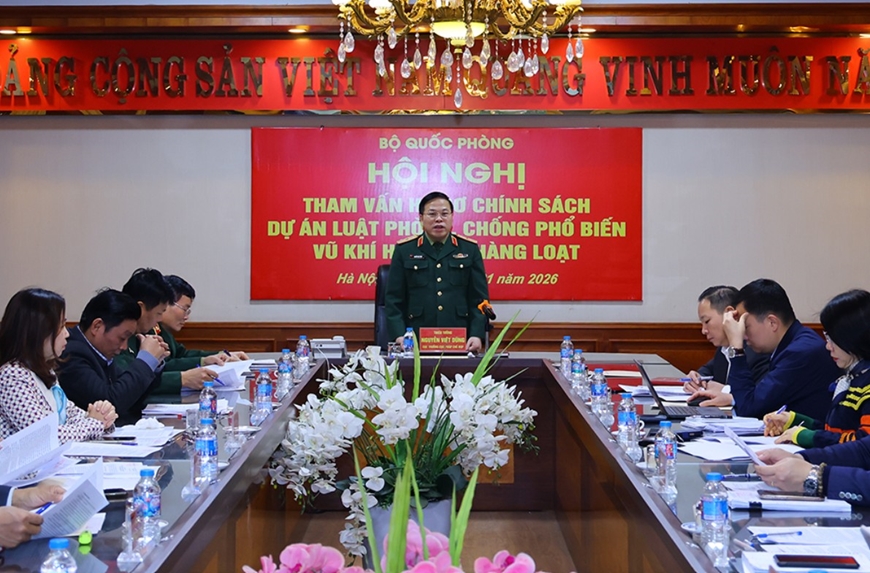 Cục Pháp chế, Bộ Quốc phòng tổ chức Hội nghị tham vấn hồ sơ chính sách xây dựng dự án Luật Phòng, chống phổ biến vũ khí hủy diệt hàng loạt vào ngày 23-1-2026. Ảnh: HUYỀN TRANG |