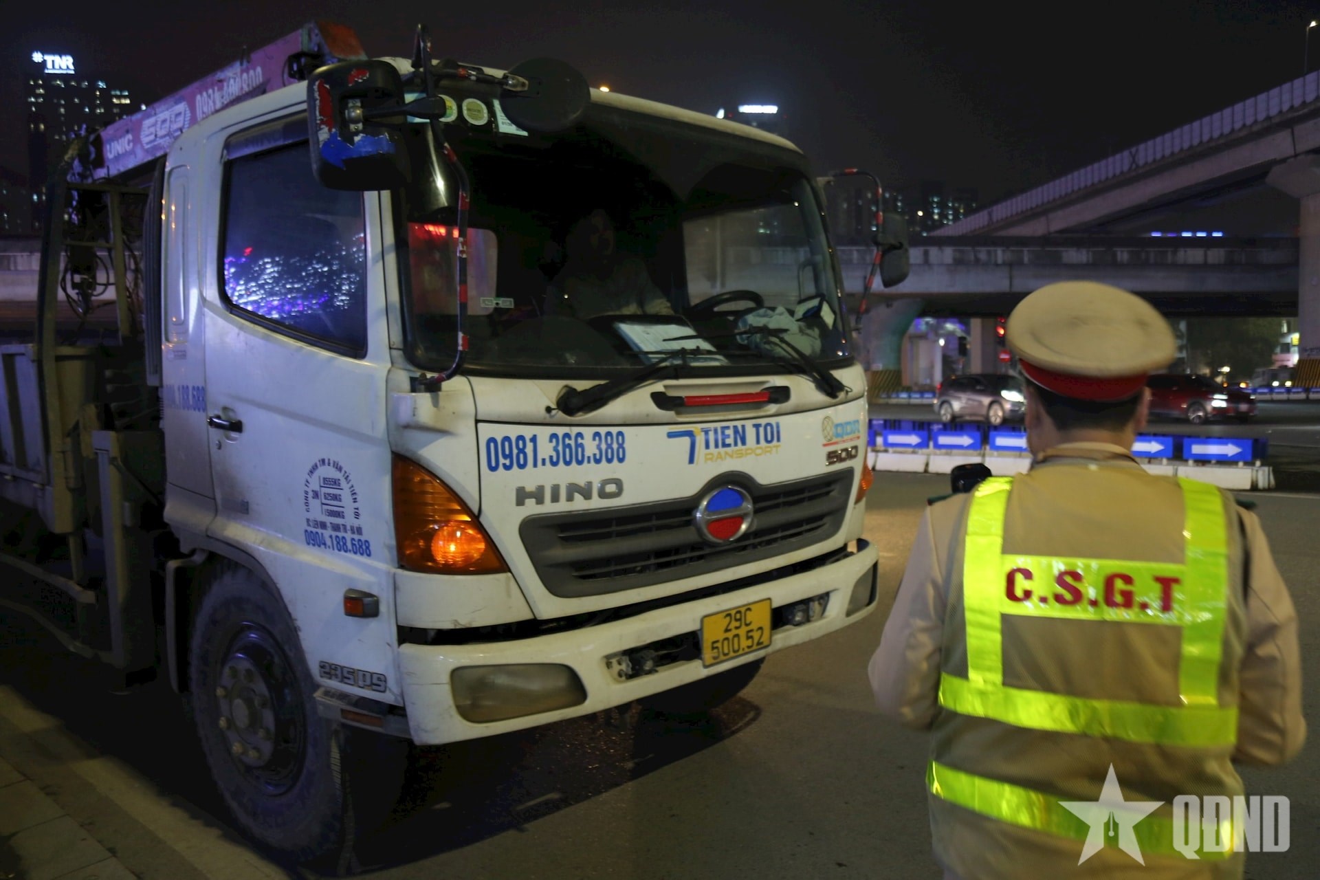 Xử lý xe tải sử dụng đèn, còi sai quy định gây mất trật tự ban đêm